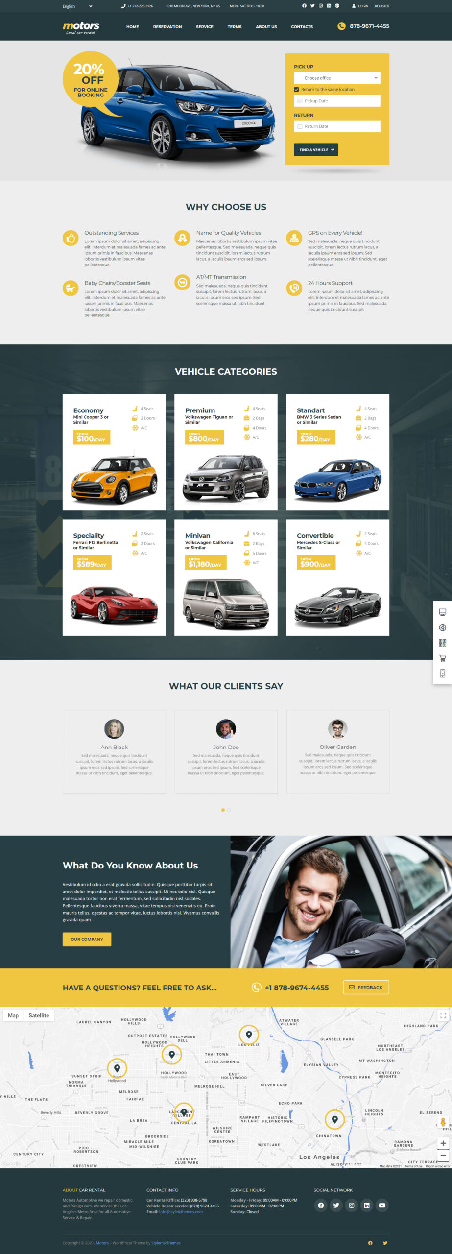This template is very popular among clients who need one-page HTML design. Theme forms will be replaced by the RENTALL reservation plugin.
